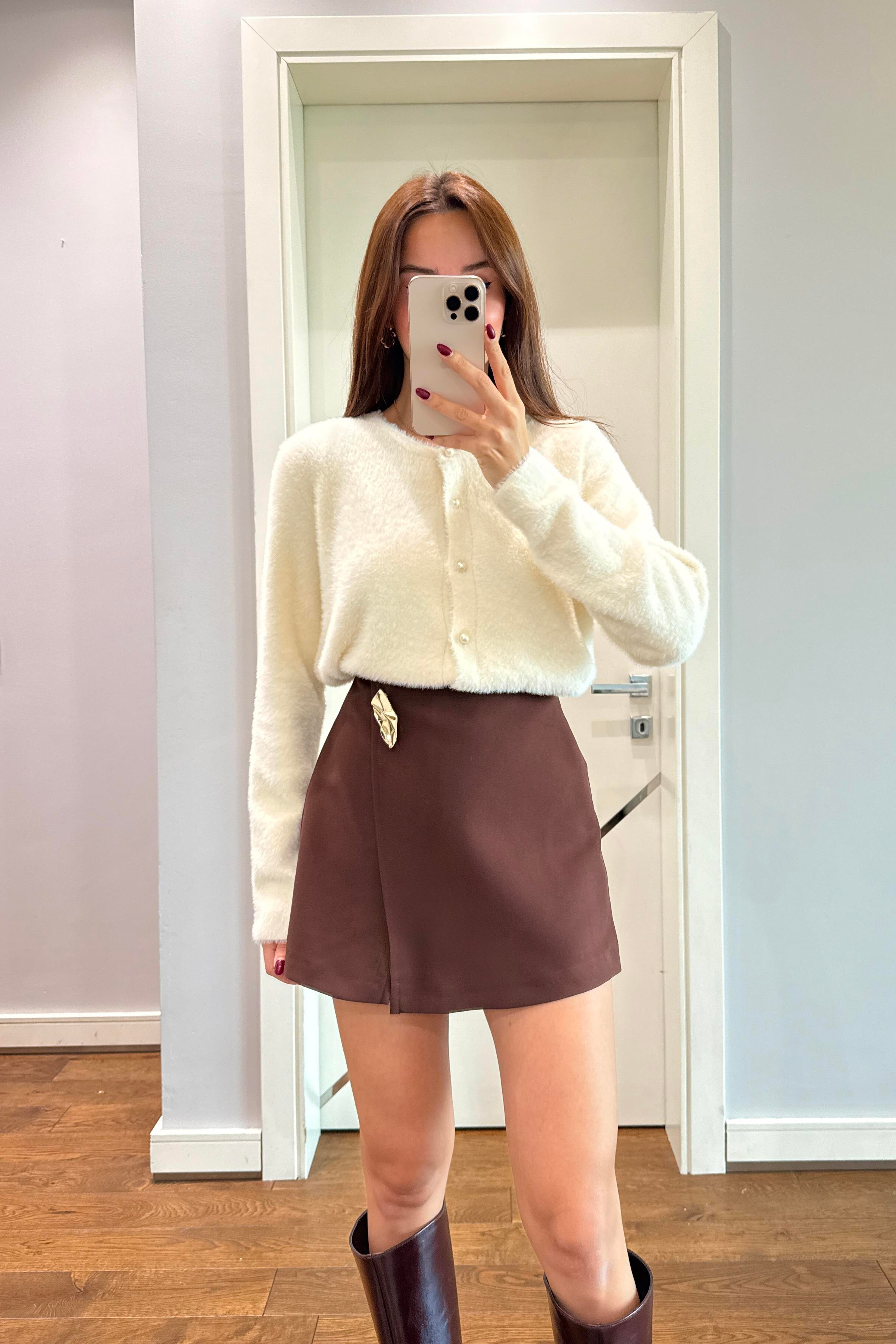 GOLD AKSESUARLI KAHVE ŞORT ETEK