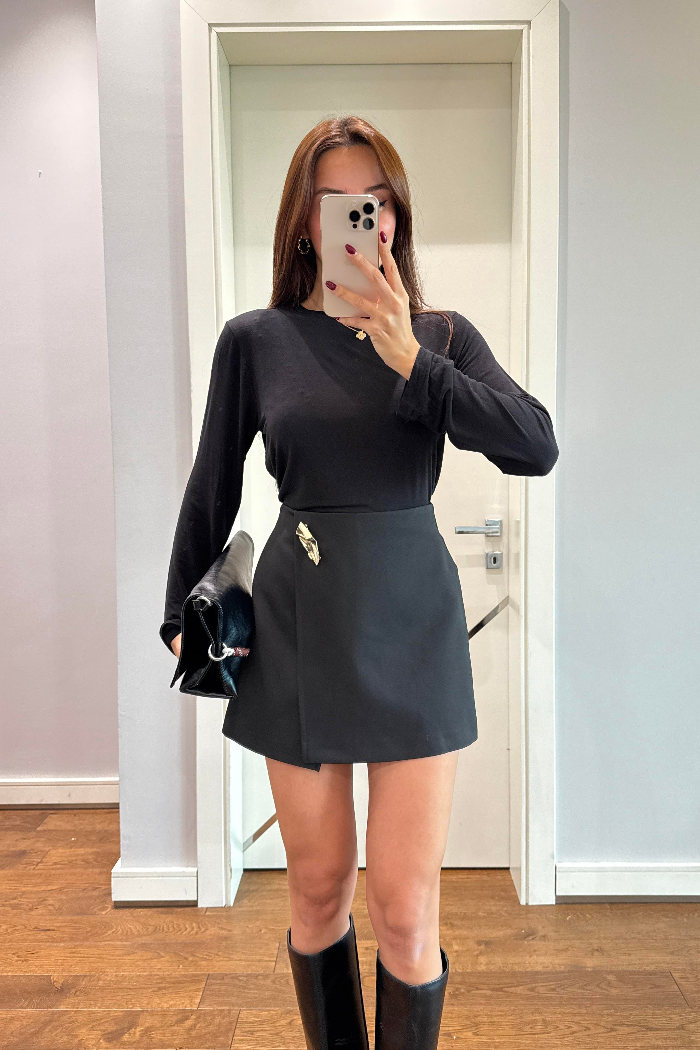 GOLD AKSESUARLI SİYAH ŞORT ETEK