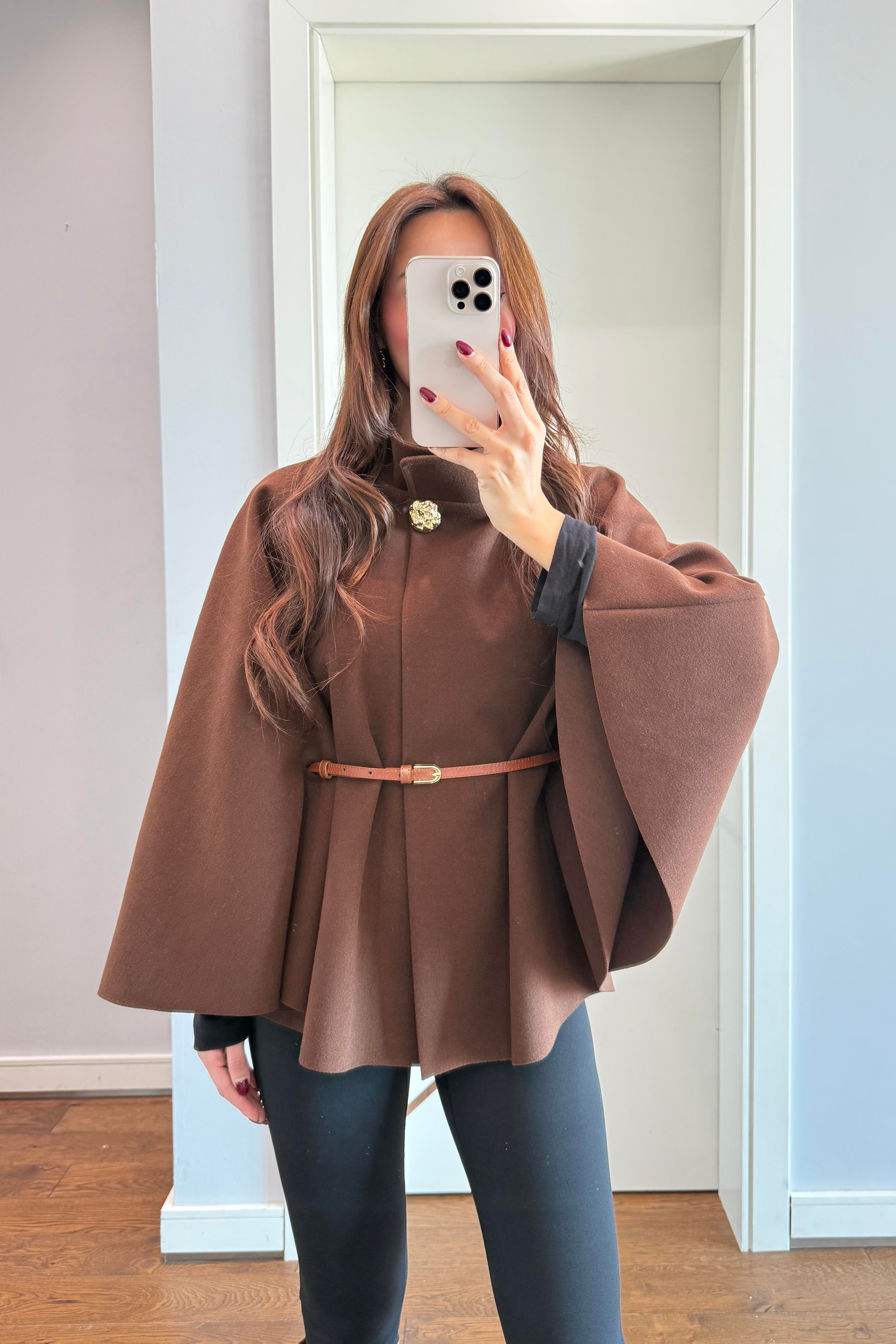 KAŞE KEMERLİ PANÇO- KAHVE