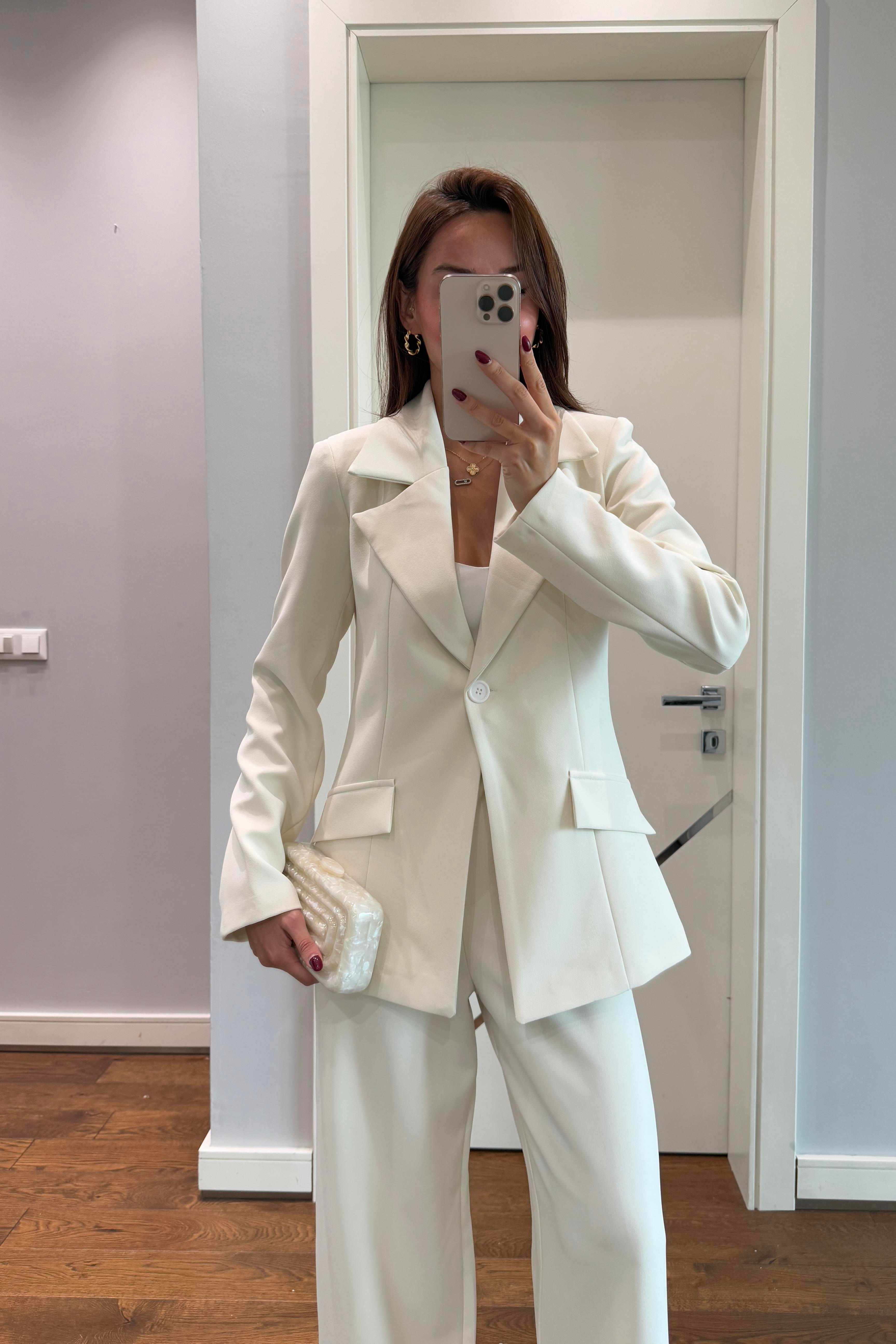 ceketin omuzları vatkalıdır,pantolonu yüksek beldir