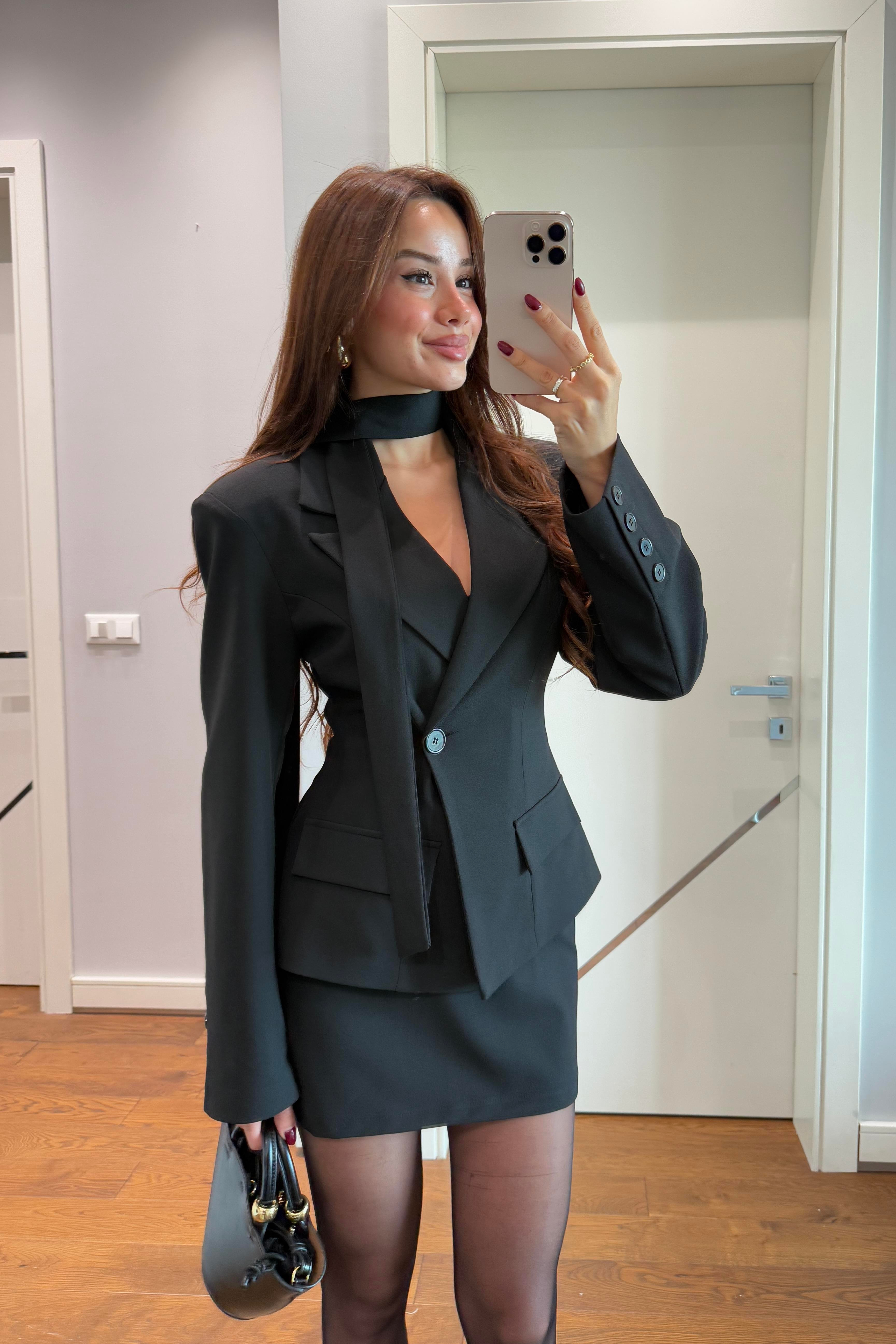 VATKALI FULARLI CEKET ETEK TAKIM-SİYAH